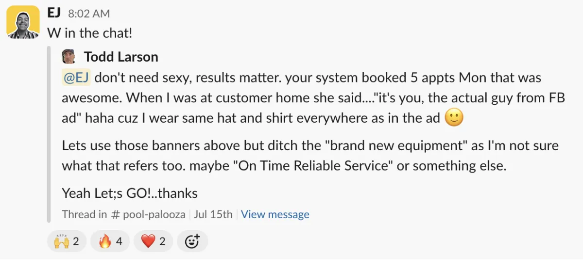 Our back end processes are designed to monitor results every two hours or less vs. a traditional agency where you'll need to wish on a shooting star that your campaign is glanced at one to two times a week. (We've seen and been behind the curtain at a lot of agencies).